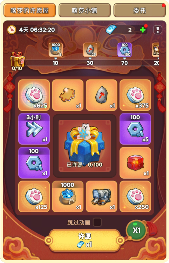2.消耗心愿礼券,可在喀莎的许愿屋获得丰厚奖励。