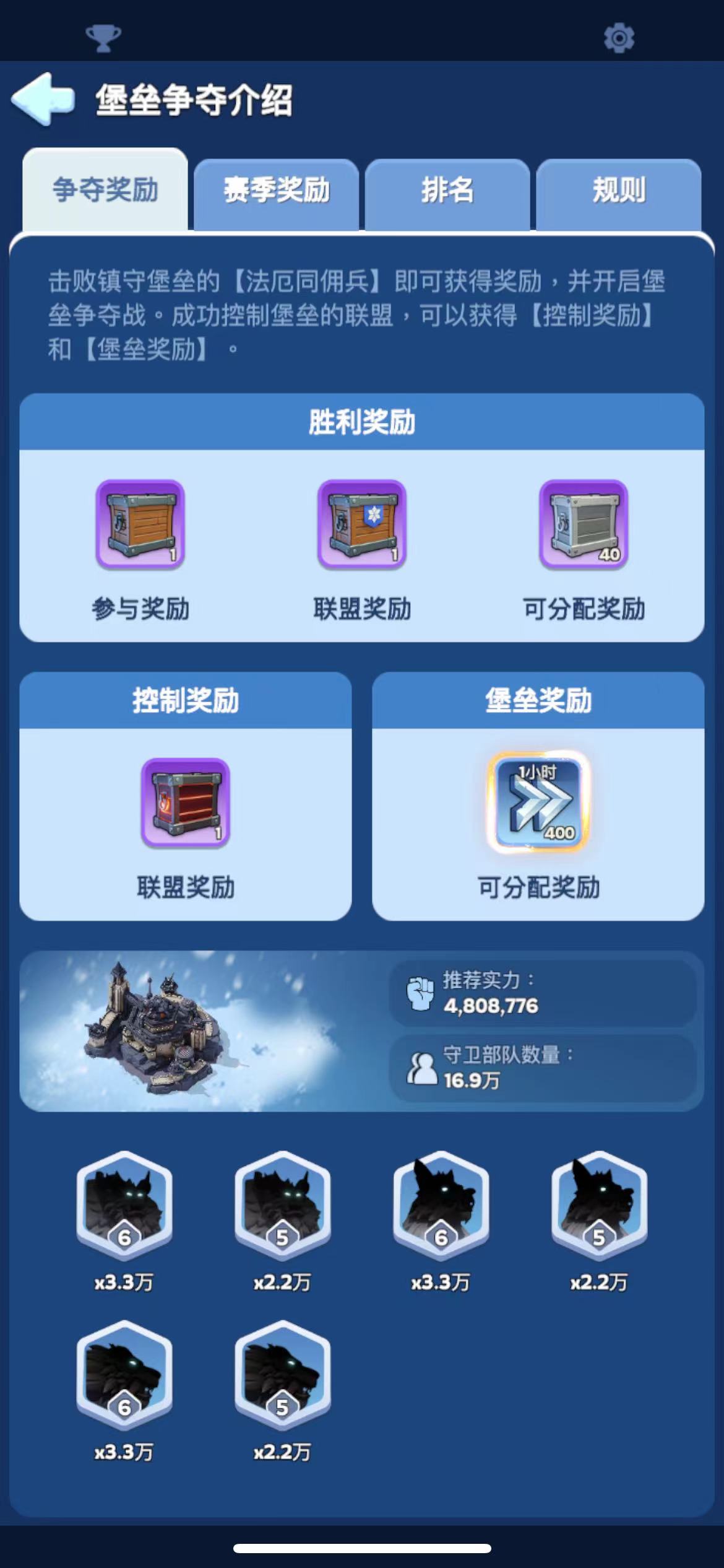 1.击败堡垒中【法厄同佣兵】的联盟可获得胜利奖励,奖励分为三类;