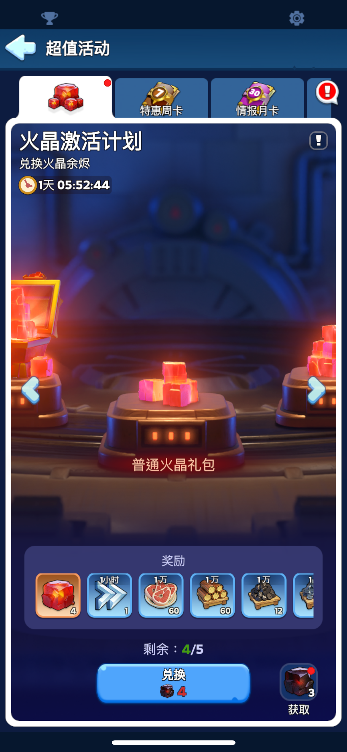 近来,几处火晶矿异常活跃,喷涌出的火晶余烬散落各处。曙光联盟新研发的共振装置能激发余烬中的残留能量,从而获取到火晶,一旦这项技术成熟,将大大缓解能量短缺的困境。 活动期间,将消耗领主体力、采集资源获得的余烬交给曙光联盟,可以换取大量火晶。活动结束后,未领取的火晶余烬将通过邮箱发放。