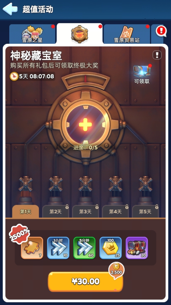 规则说明 旧王国没落前,将无数珍宝藏在冰原各处的【神秘藏宝室】,探险队发现了其中一座,快来开启它的大门吧。 1.活动开始后,每日将解锁一个礼包。购买礼包,相应的充能管道就将被激活,并向大门输送能量。活动期间激活所有充能管道,即可获得大奖–藏宝室中的珍宝。2.大奖可自选;如果在活动结束前未做出选择,系统将替您选择;如若您已经做出了选择,则将按照您的选择发放。