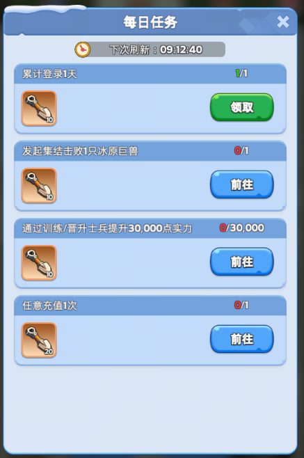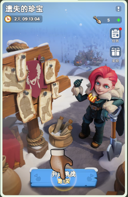 2.使用雪铲,可挖掘被掩埋在雪地中的物品,找齐寻物启事上的所有物品,即可完成关卡,获得奖励。