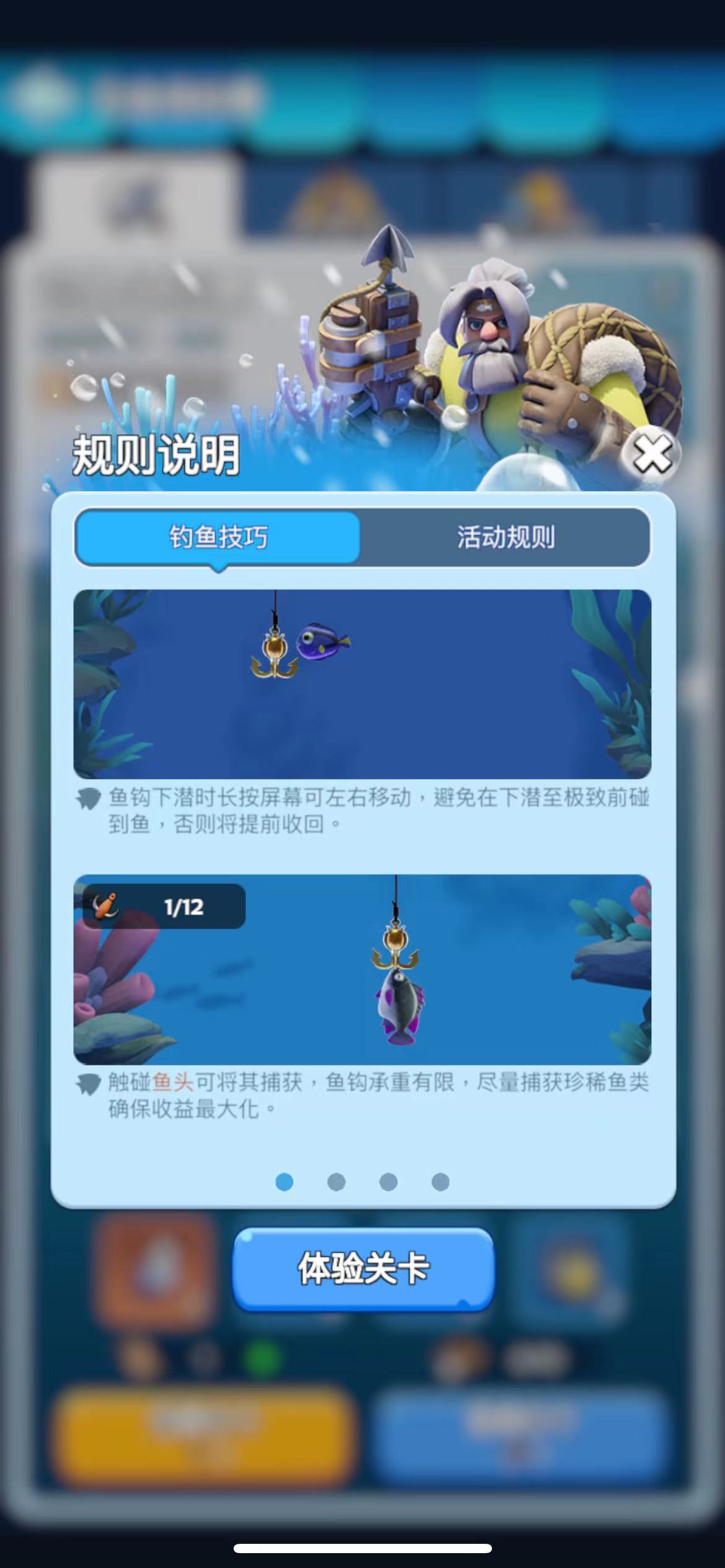 - 鱼钩下潜时长按屏幕可左右移动,避免在下潜至极致前到鱼,否则将提前收回。