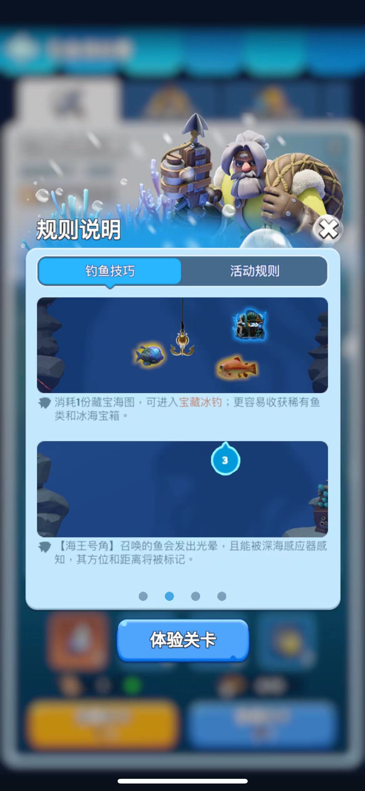 - 消耗1份藏宝海图,可进入宝藏冰钓;更容易收获稀有鱼类和冰海宝箱。