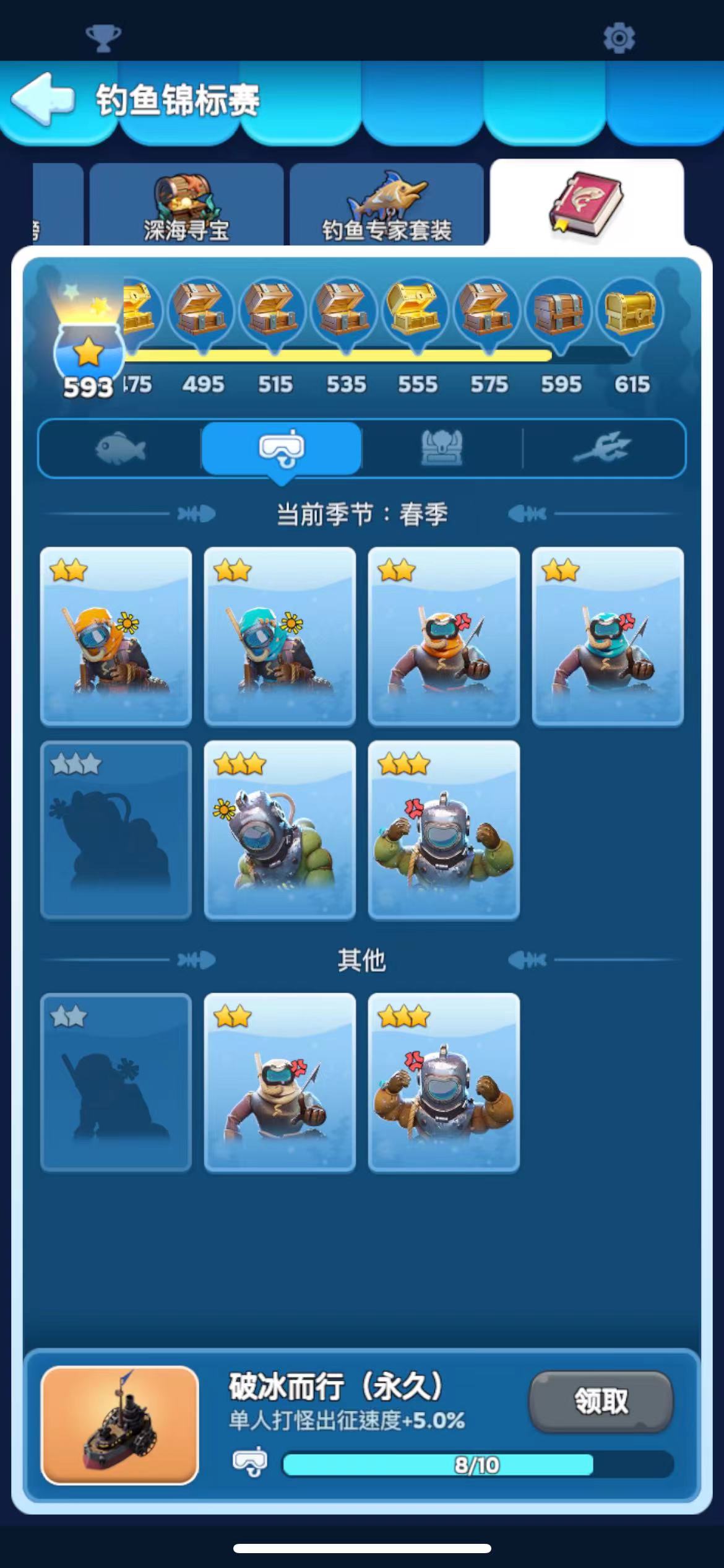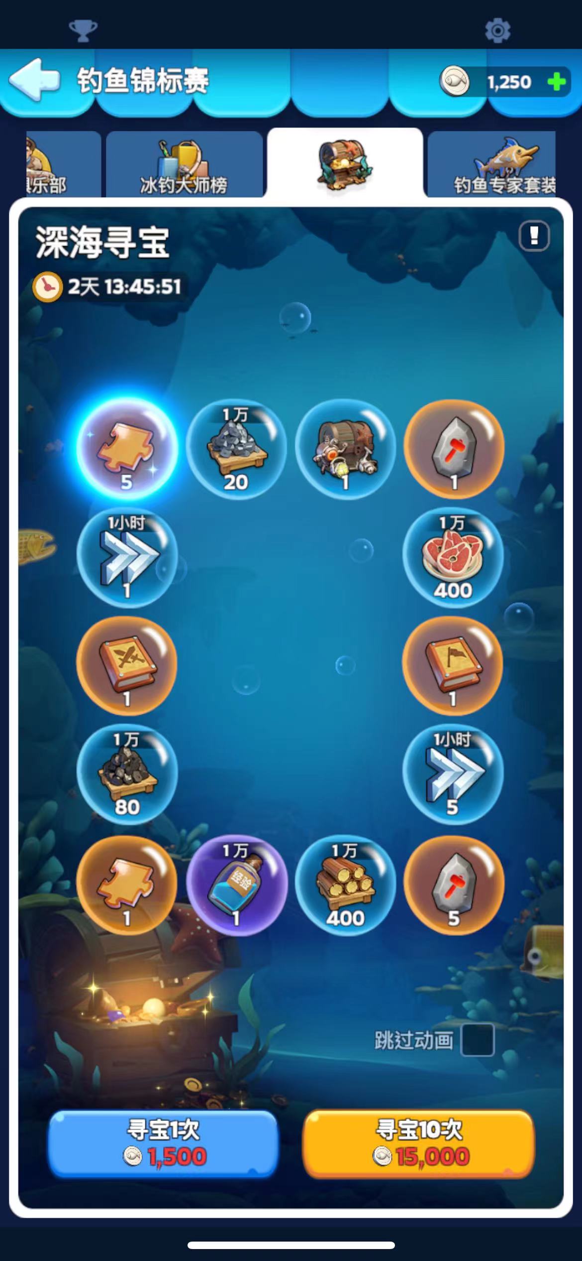 - 2.渔具总等级达到25级解锁深海寻宝活动展示。所有渔具都升至满级,可参与深海寻宝活动。