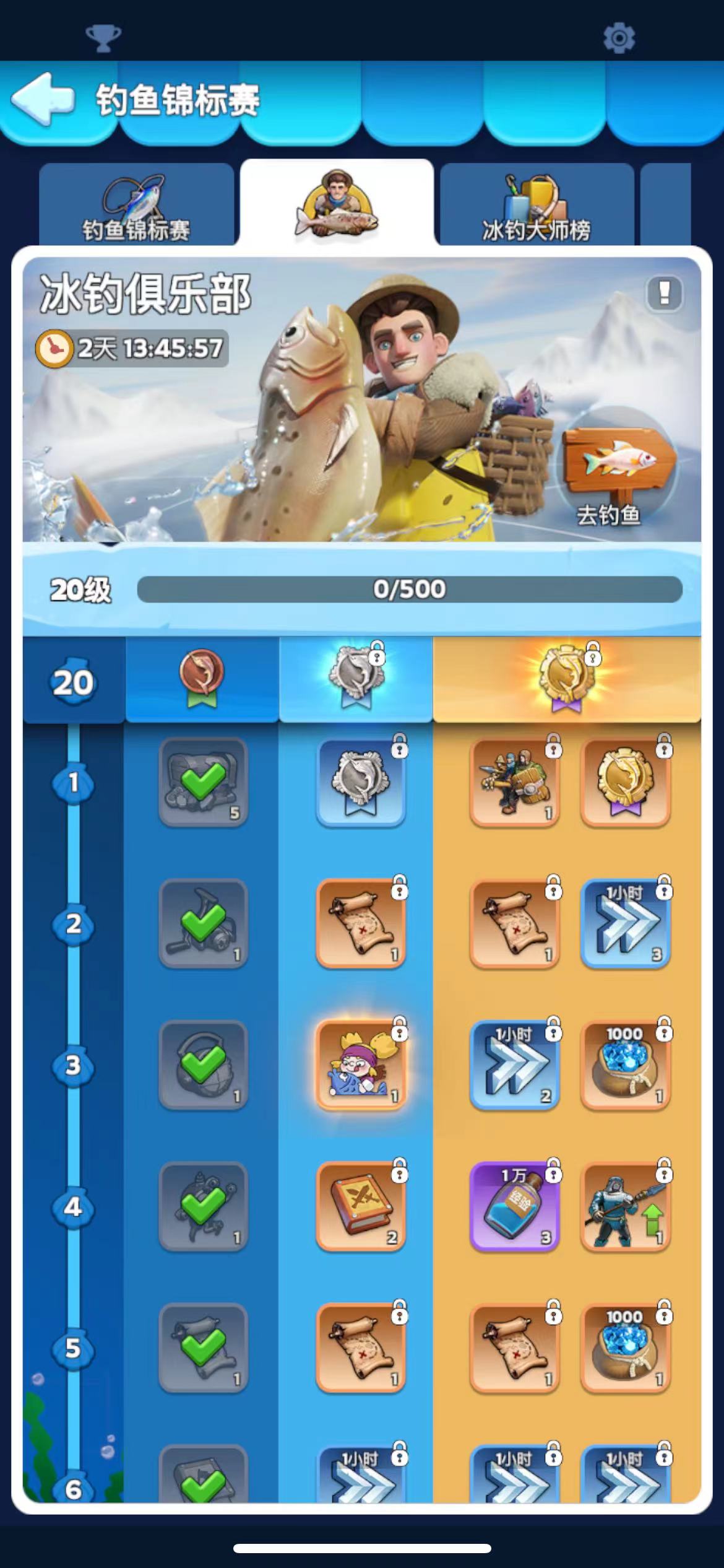 - 1.活动期间,领主可通过钓鱼获得冰钓积分,提升等级。