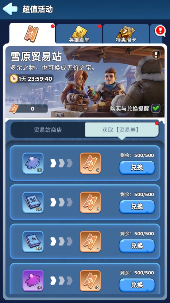 在贸易站中,可将多余物品换成【贸易券】,或用【贸易券】购买其它重要道具。