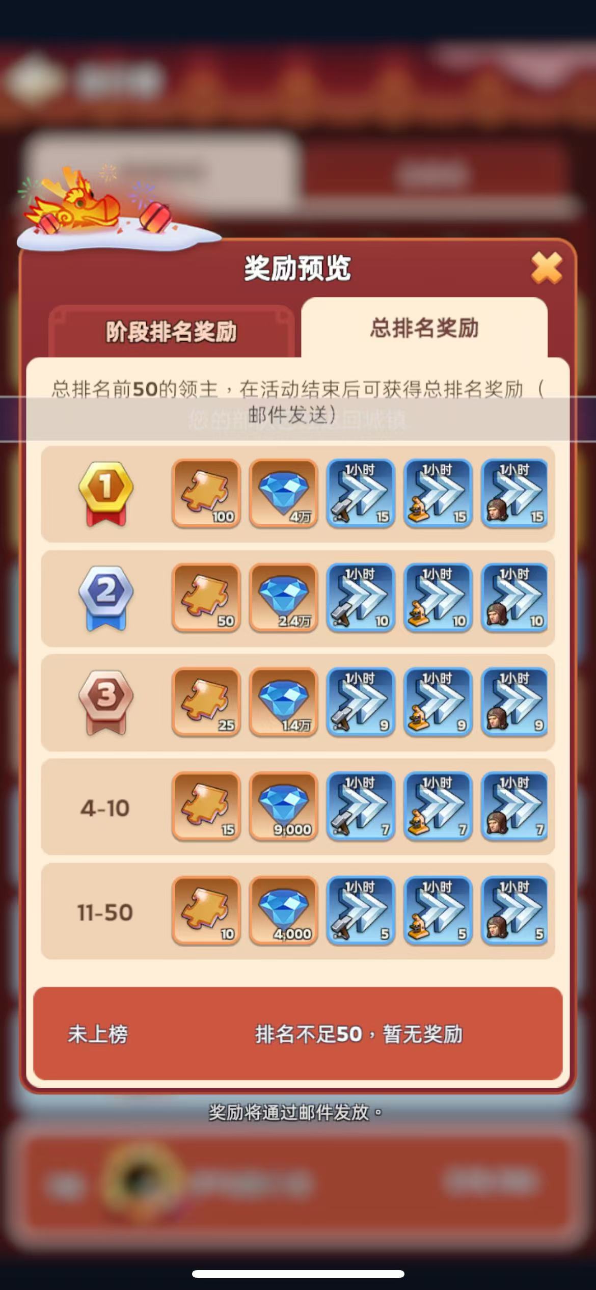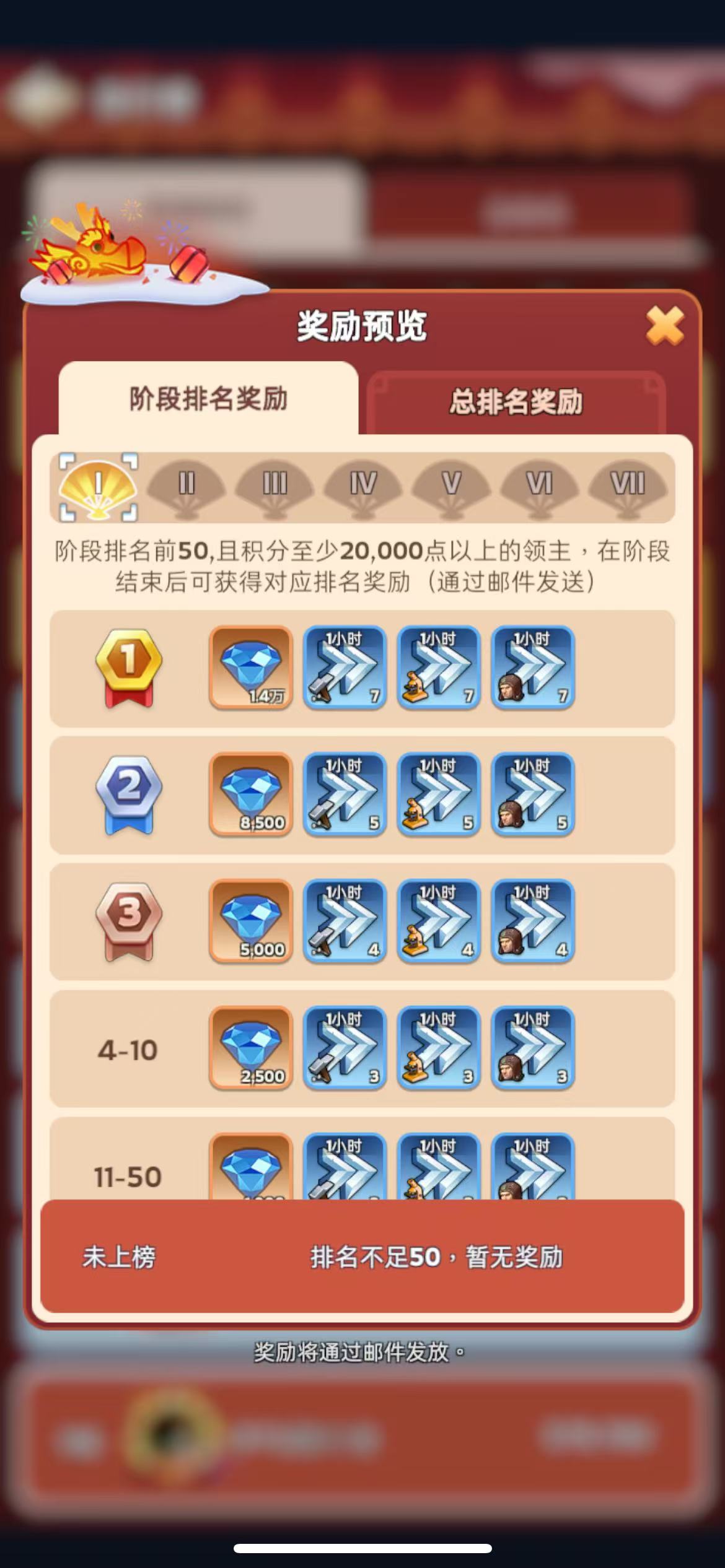 3.每个阶段结束时,将根据阶段积分排名情况发放阶段排名奖励。