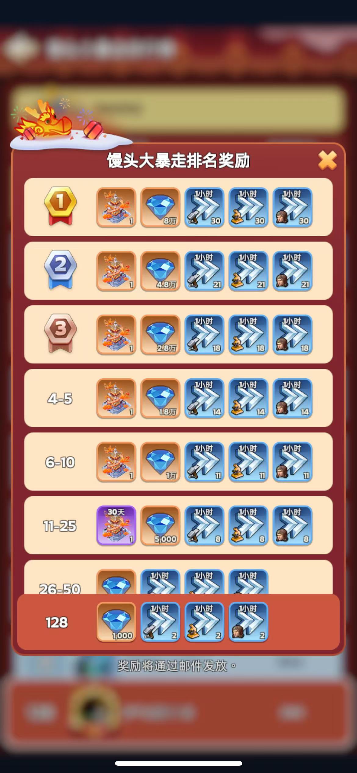 8.活动结束后,剩余的每个吉庆馒头,都将通过邮件被自动兑换成1K资源补给箱。