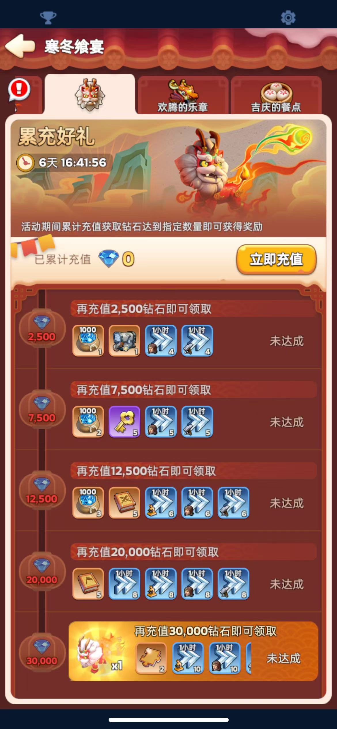 - 活动期间累计充值获取钻石达到指定数量即可获得奖励。