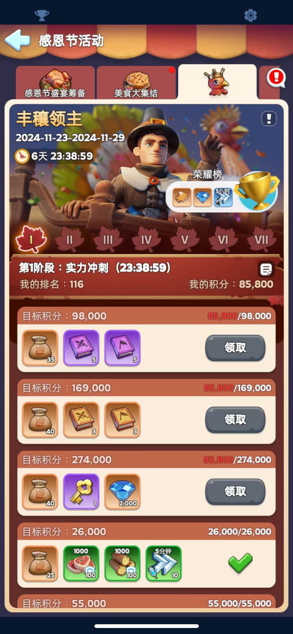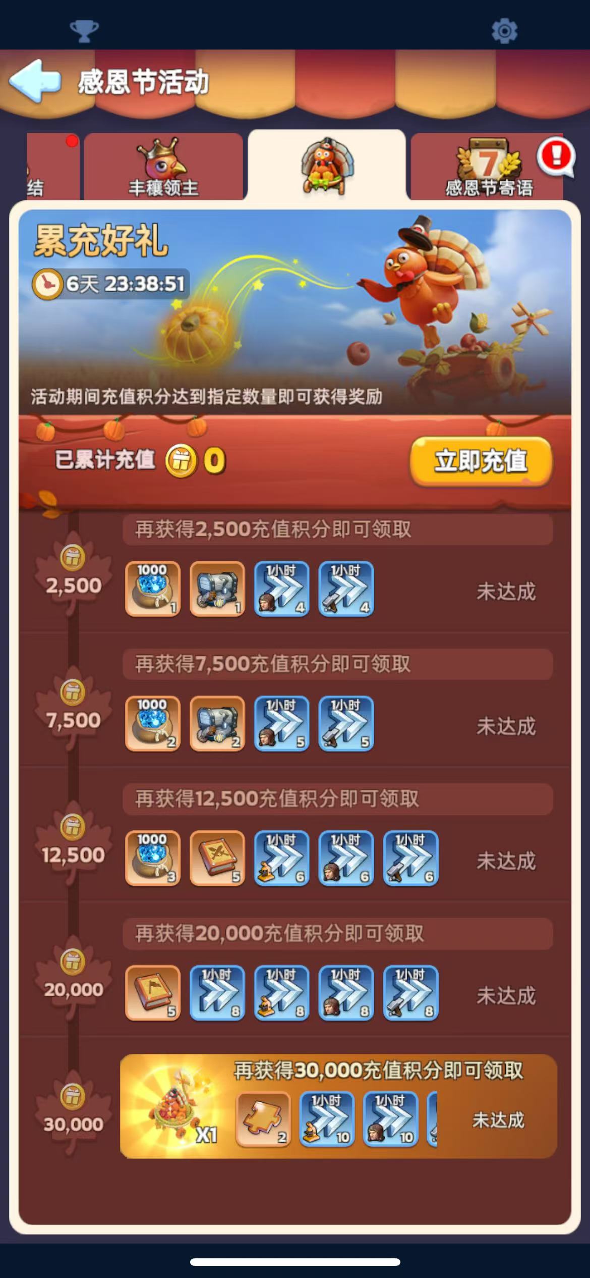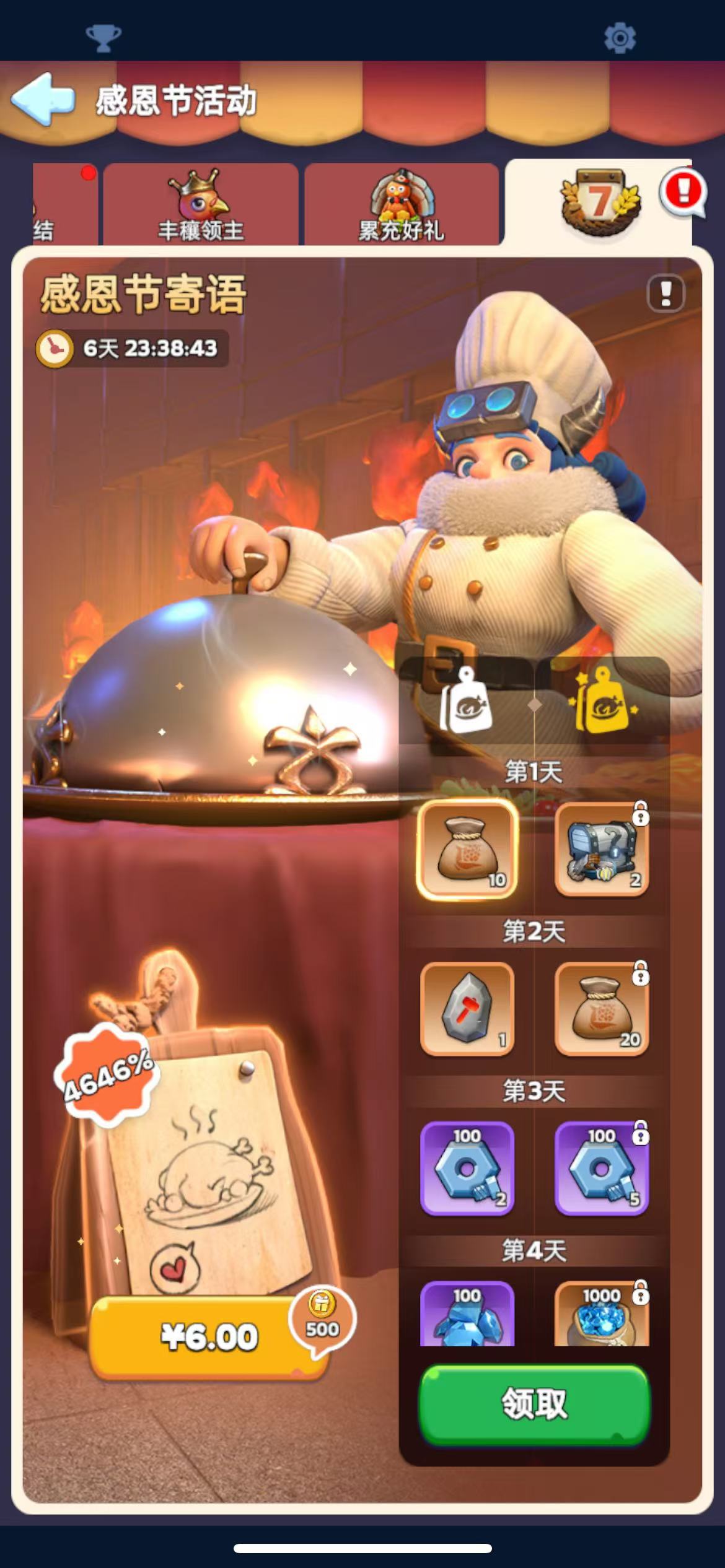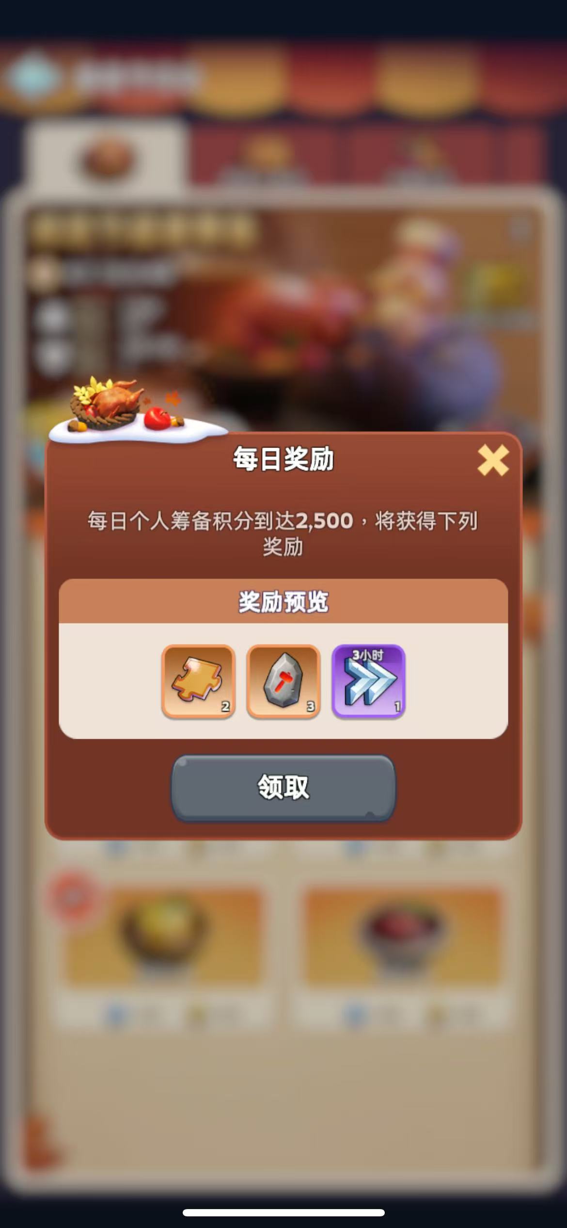 - 活动期间参加【感恩节盛宴筹备】,提交菜品,可获得本活动的积分,以提升等级、解锁奖励。