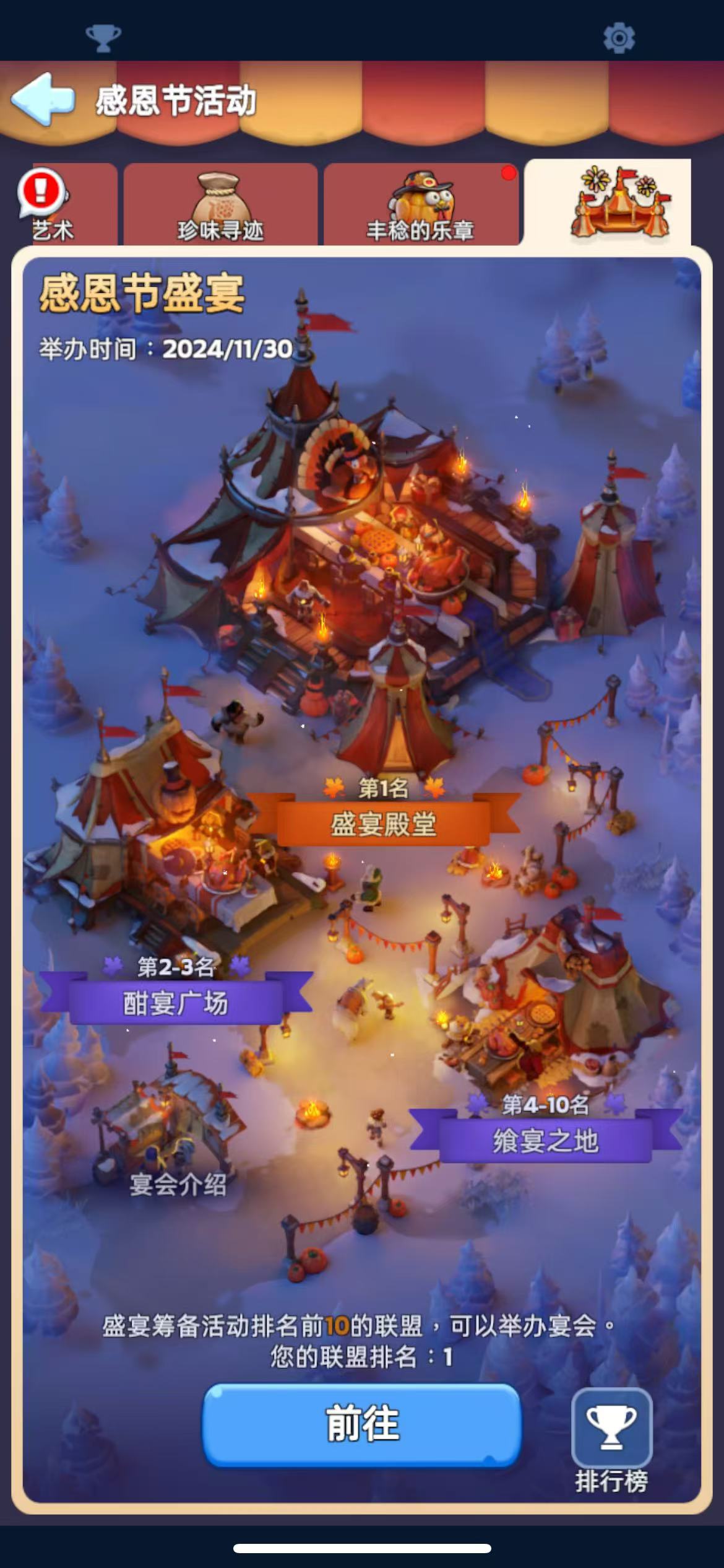 1.1【感恩节盛宴筹备】排名前10的联盟,可在该活动结束后举办联盟宴会。